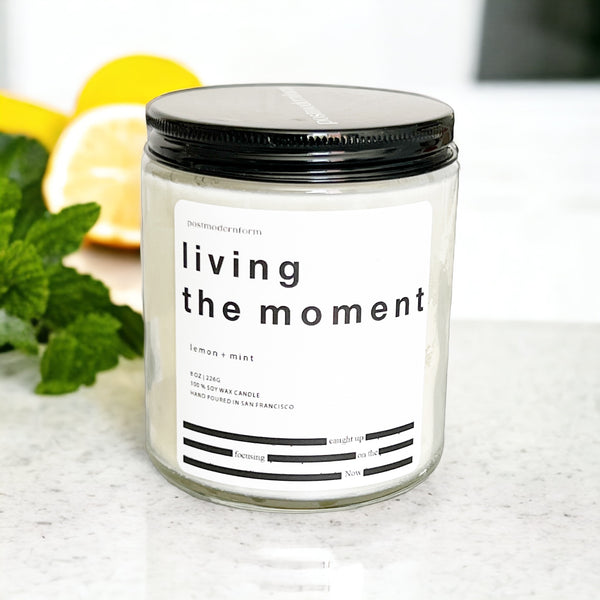 Experience the allure of 'living the moment', designed to captivate your senses and awaken a profound appreciation for the present. Lemon peel top notes combine with a subtle lily mid note, and a garden mint leaf base. Let 'living the moment' serve as a gentle reminder to slow down, find solace in the present, and embrace the magic of now.
