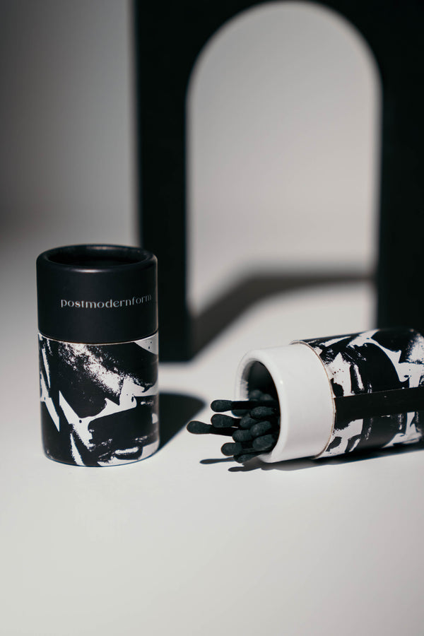 Complete your postmodernform purchase with a matching set of matches. Packaged in a complementary black and white tube package, these matches will add the perfect touch to your postmodernform candles.